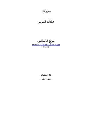 يتناول الكتاب "عبادات المؤمن" للداعية عمرو خالد مفهوم العبادة كصلة بين العبد وربه، مسلطاً الضوء على أهمية الصلاة وفضلها في حياة المؤمنين، خاصة الشباب. يهدف الكاتب إلى تغيير النظرة نحو العبادة لتصبح مصدراً للسعادة والطمأنينة بدلاً من أن تكون عبئاً. يحتوي الكتاب على مجموعة من المحاضرات التي تم تحويلها إلى نصوص مكتوبة لتعزيز روح الإيمان بين المسلمين.