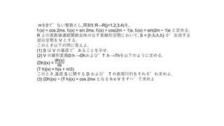 (3) (Dh)(x) − (T h)(x) = cos 2mx となる h ∈ V をすべて求めよ