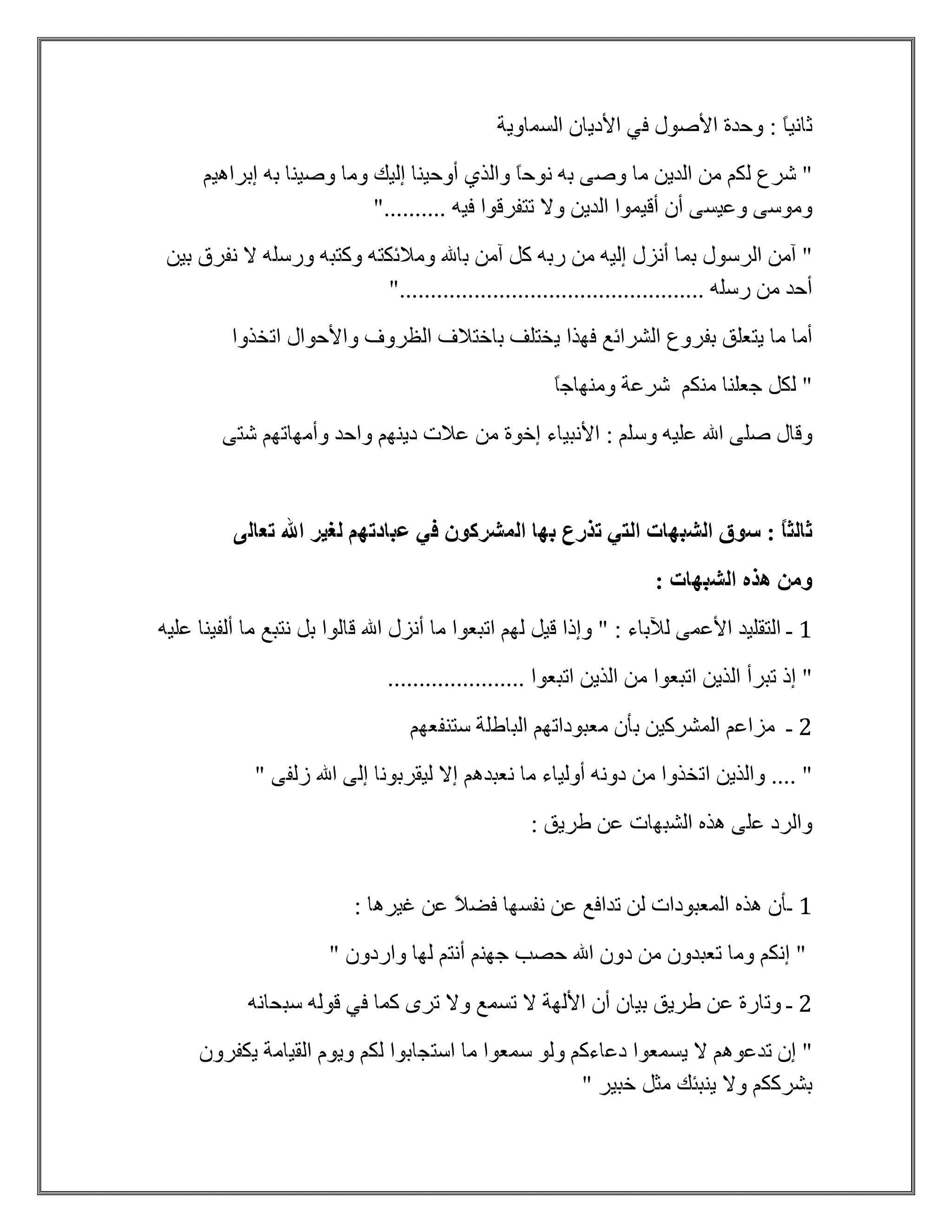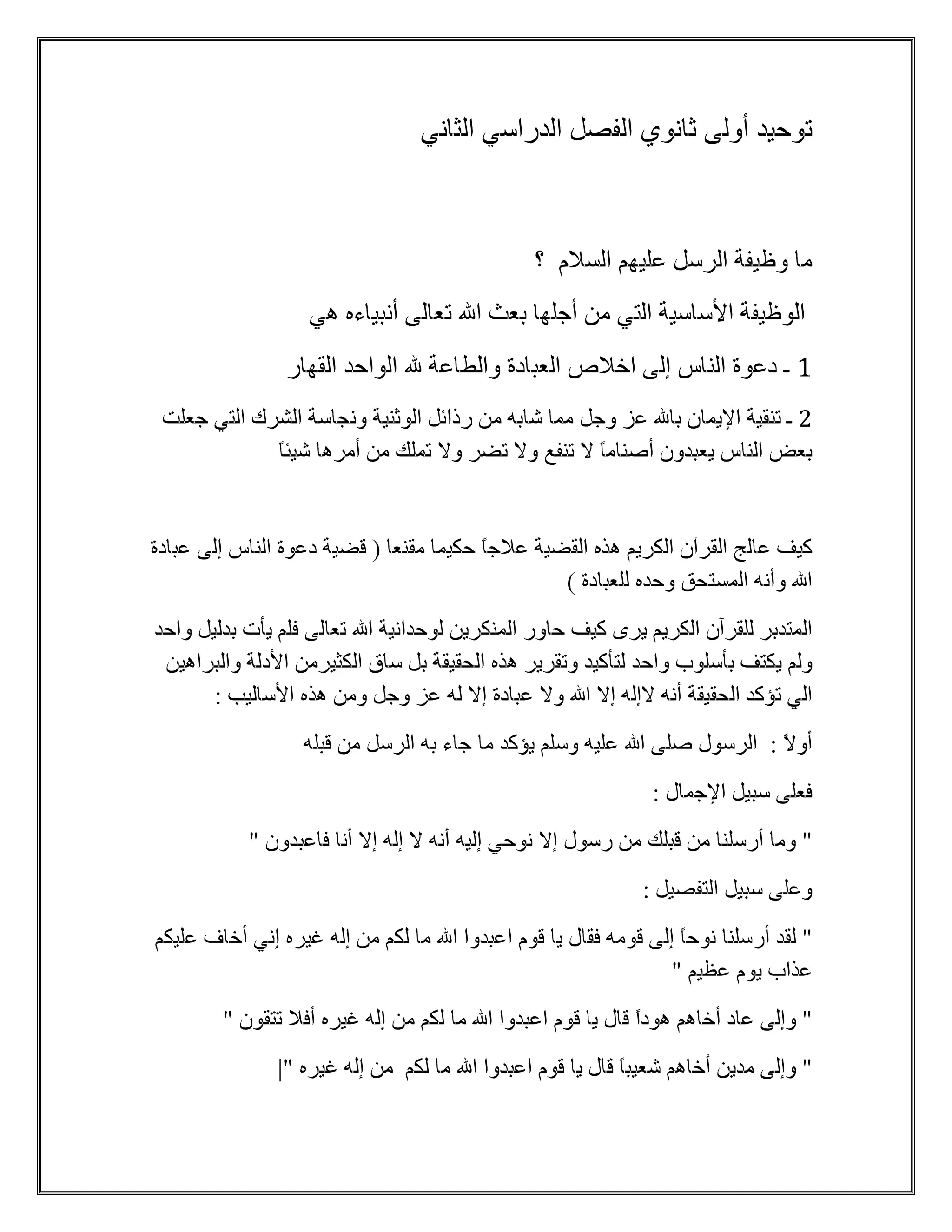 تناقش الوثيقة وظيفة الرسل عليهم السلام في دعوة الناس إلى عبادة الله الواحد وتنقية الإيمان من الوثنية. تعرض كيف أن القرآن الكريم استخدم أساليب متعددة لإقناع الناس بعبادة الله وحده، بما في ذلك التأكيد على وحدة الأديان السماوية ورد الشبهات التي أثيرت حول الشرك. تُبرز الوثيقة أهمية الإخلاص في العبادة وضرورة الابتعاد عن الشرك والاعتماد على الله في الأوقات الصعبة.