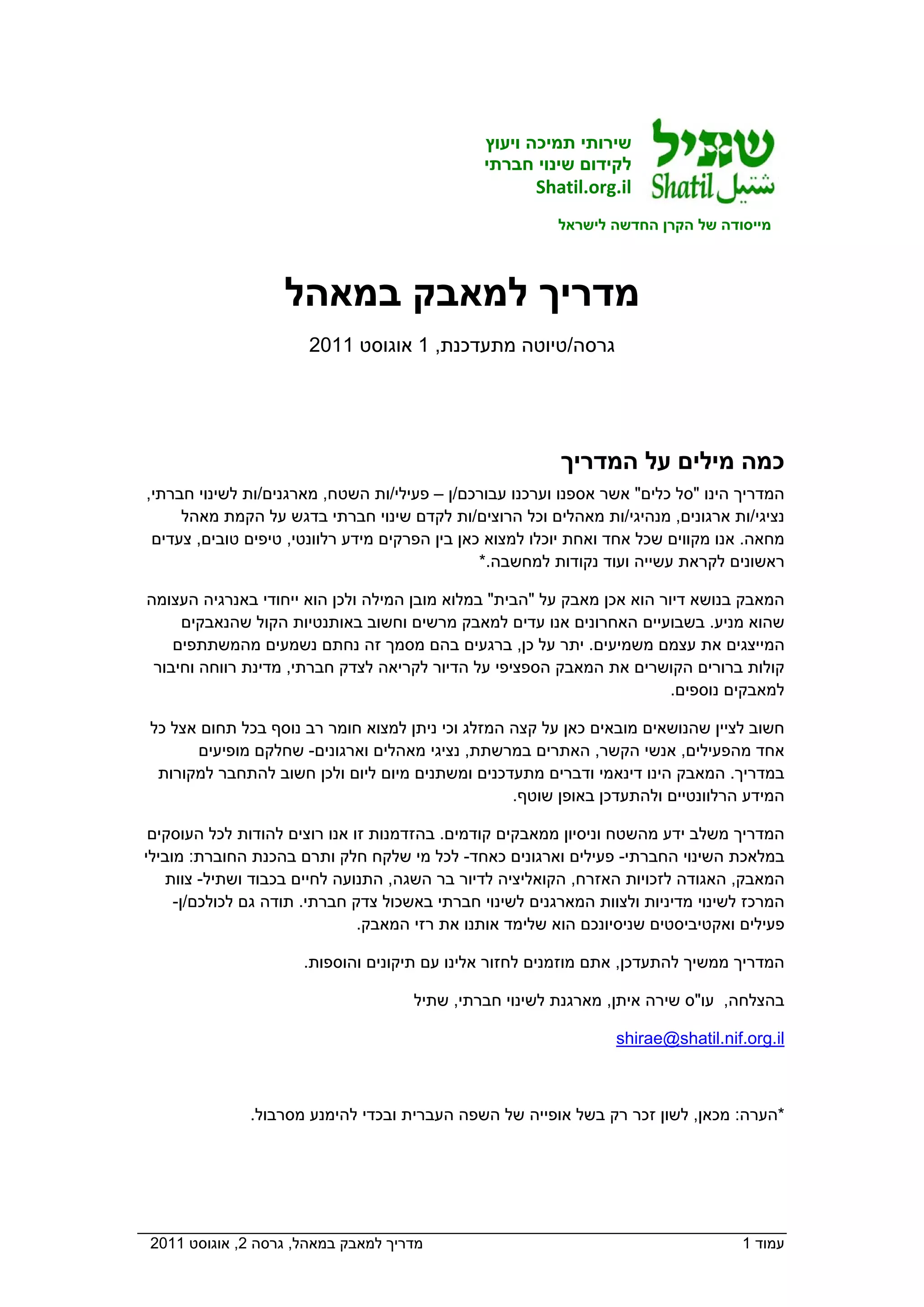 מדריך למאבק במאהל, גרסה 2, אוגוסט 1102 עמוד 1