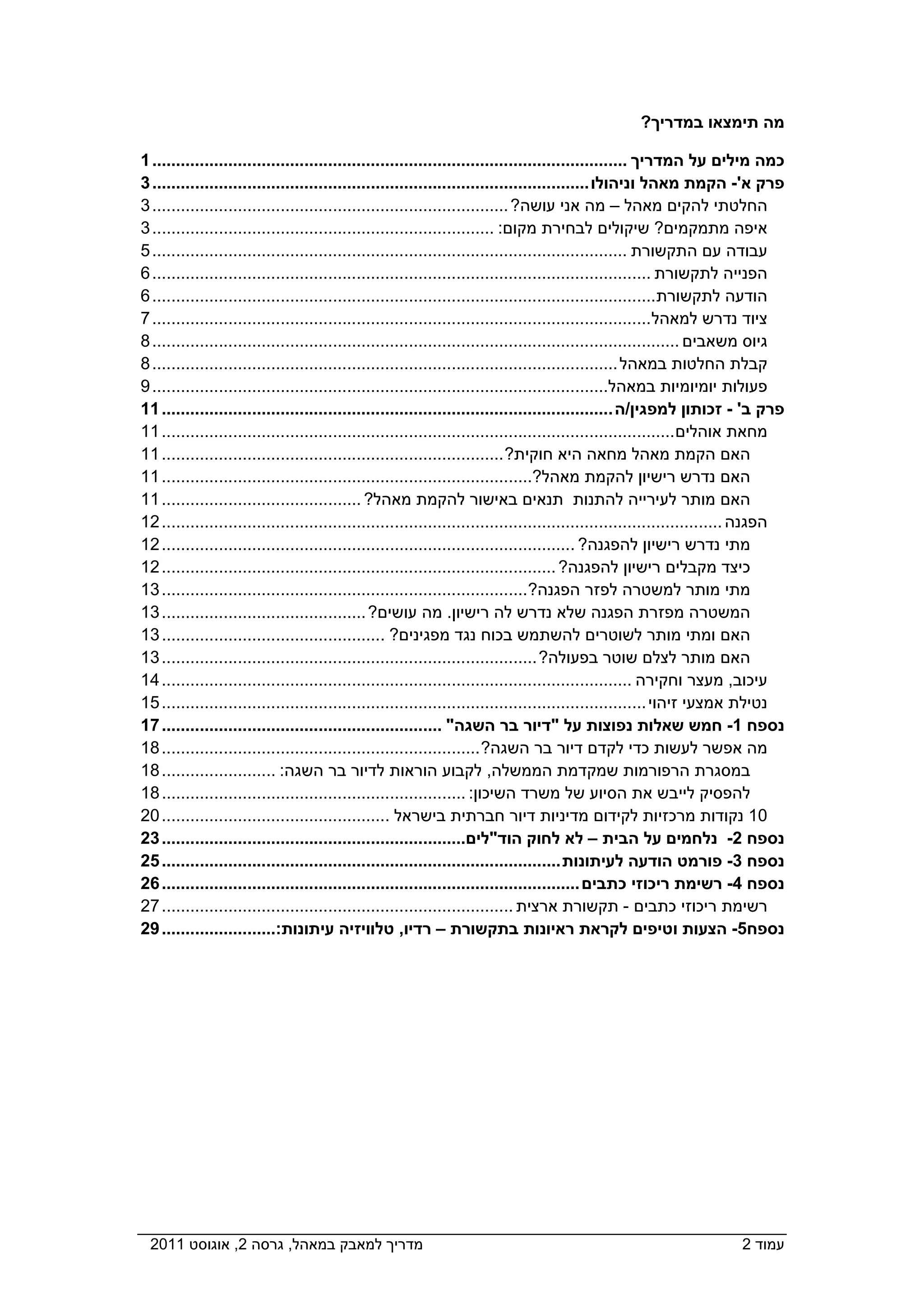 החלטתי להקים מאהל – מה אני עושה? ........................................................................... 3