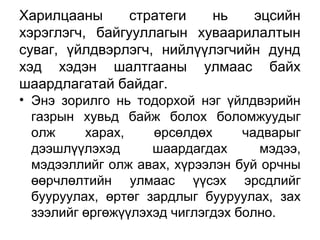 Б.Наранцацрал -БАЙГУУЛЛАГЫН ЗАН ТӨЛӨВ, ХАРИЛЦААНЫ ХЭВ ШИНЖИЙН ЗАГВАРУУДЫГ АШИ... PPT
