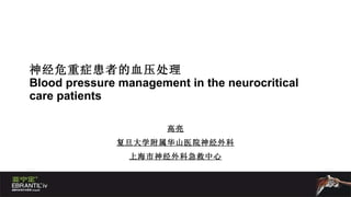 INTRODUCTION The causesof acute hypertension in a variety of brain injury paradigms The effects of hypertension on the cerebral vasculature The management of acutely elevated blood pressure in neurologic disease