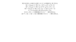 (2) Y = S1 ∪ S2 ∪ S3 の整係数ホモロジー群を求めよ.