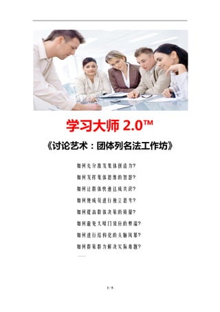 《讨论艺术:团体列名法工作坊》旨在通过教授团体列名法的信息和技巧,激发集体创造力和提高决策质量。课程包括理论知识、实施步骤以及实战演练,适合各层次的管理人员和希望提升团队协作能力的员工。课程注重互动和实用性,帮助学员在真实环境中掌握相关技能。