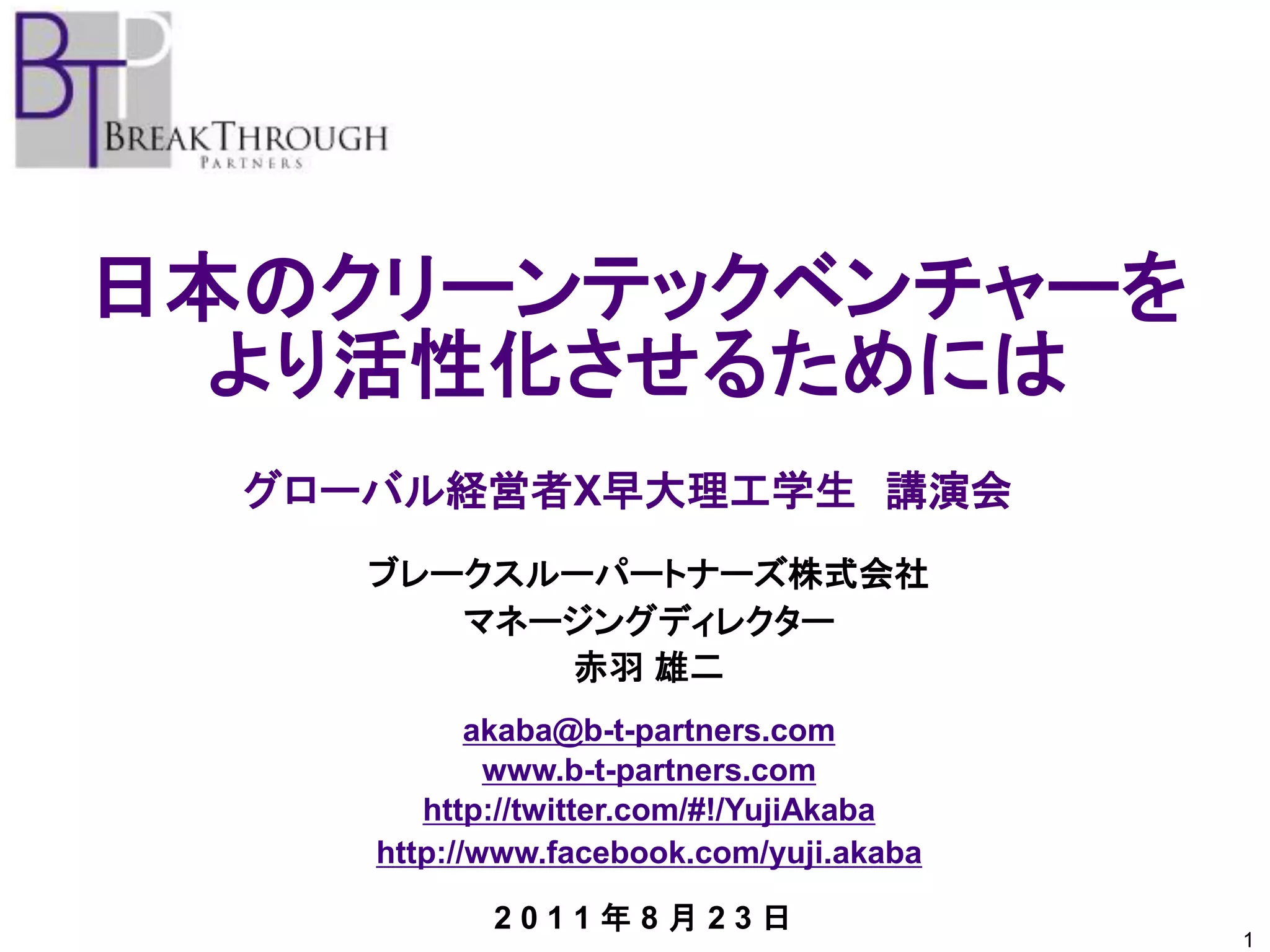 日本のクリーンテックベンチャーをより活性化させるためには