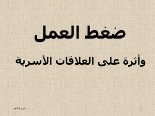 تناقش الوثيقة تأثير ضغط العمل على العلاقات الأسرية ومؤشراته الجسدية والنفسية والسلوكية، مشيرة إلى أن الإجهاد النفسي يساهم في مشكلات صحية وسلوكية خطيرة. كما تقدم استراتيجيات للتعامل مع الضغوط تشمل تحسين العلاقات الأسرية وتطوير مهارات القيادة الفعالة. يتناول النص أيضًا أهمية الرضا بالقضاء والقدر كوسيلة للتخفيف من الضغوط وتحقيق الهدوء النفسي.