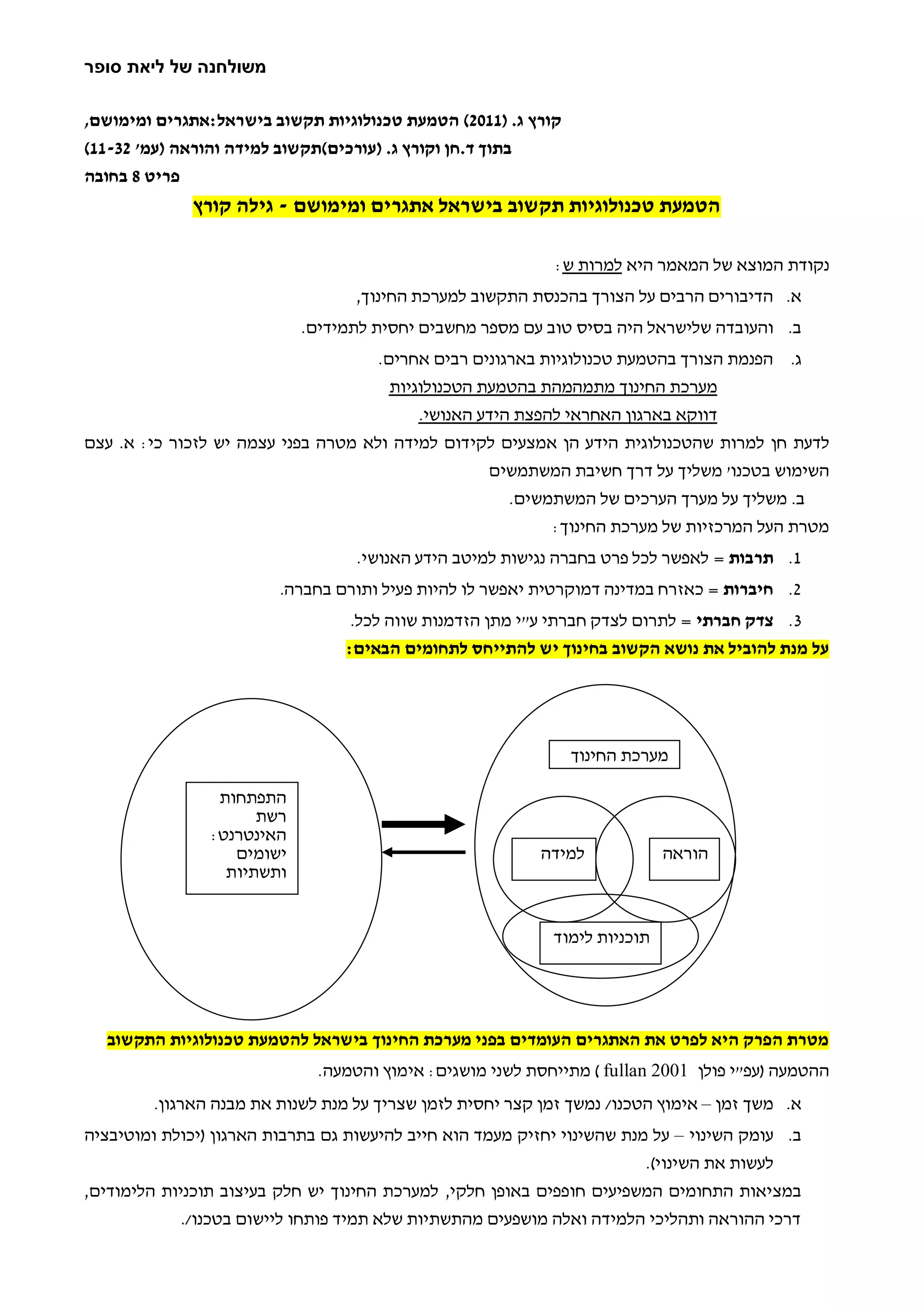 קורץ ג. (2213) הטמעת טכנולוגיות תקשוב בישראל:אתגרים ומימושם,