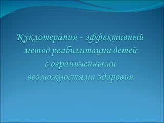 Документ описывает важность ручных кукол для детского восприятия, их роль в развитии творческих навыков и эмоционального общения. Упоминается использование кукол в игровых занятиях, театрализованных спектаклях и для формирования социальных качеств у детей. Куклы помогают детям как в обучении, так и в эмоциональном развитии, обеспечивая поддержку в преодолении страхов и повышая выразительность речи.