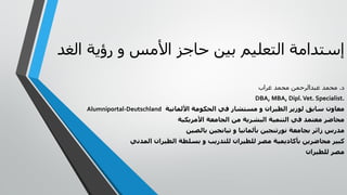 تناقش الوثيقة التحديات والعوامل المؤثرة في التعليم واستدامته، مع التركيز على الفجوة بين الأجيال وأهمية التفاعل بين المعلمين والطلاب. تشير أيضاً إلى الحاجة إلى تطوير مهارات التعليم وأساليبه لضمان النجاح والإبداع. كما تتطرق إلى دور التدريب كعملية تعلم متعددة الأبعاد تتطلب فهم احتياجات السوق ومتطلبات النجاح.