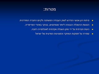 פיתוח הון אנושיהנדרש לשוק העבודה המשתנה ולקיום החברה המודרנית.