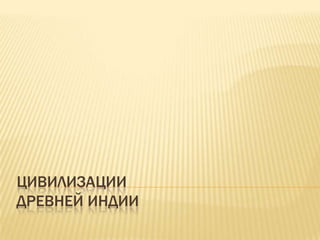 Документ описывает цивилизационный процесс и особенности древней Индии, включая харрапскую и ведийскую цивилизации. Освещаются природные условия, культурные характеристики, социальные структуры и основные текстовые памятники. Также рассматриваются изменения в культуре и обществе, а также взаимодействие с другими народами на территории Индостана.