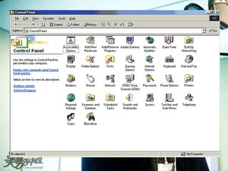 ระบบปฏิบัติการคอมพ์ฯ 1. ระบบปฏิบัติการ หรือที่เรียกย่อ ๆ ว่า โอเอส ( Operating System : OS) เป็นซอฟต์แวร์ใช้ในการดูแลระบบคอมพิวเตอร์ ระบบปฏิบัติการที่นิยมใช้กันมากและเป็นที่รู้จักกันดีเช่นดอส ( Disk Operating System : DOS) วินโดวส์ ( Windows) โอเอสทู ( OS/2) ยูนิกซ์ ( UNIX) DOS เป็นซอฟต์แวร์จัดระบบงานที่พัฒนามานานแล้ว การใช้งานจึงใช้คำสั่งเป็นตัวอักษร ดอสเป็นซอฟต์แวร์ที่รู้จักกันดีในหมู่ผู้ใช้ไมโครคอมพิวเตอร์ Windows ระบบปฏิบัติการที่พัฒนาต่อจากดอส เพื่อเน้นการใช้งานที่ง่ายขึ้น สามารถทำงานหลายงานพร้อมกันได้ โดยงานแต่ละงานจะอยู่ในกรอบช่องหน้าต่างที่แสดงผลบนจอภาพ การใช้งานเน้นรูปแบบกราฟิก ผู้ใช้งานสามารถใช้เมาส์เลื่อนตัวชี้ตำแหน่งเพื่อเลือกตำแหน่งที่ปรากฏบนจอภาพ ทำให้ใช้งาน คอมพิวเตอร์ได้ง่าย วินโดวส์จึงได้รับความนิยมในปัจจุบัน ระบบปฏิบัติการคอมพิวเตอร์ 2. OS/2 เป็นระบบปฏิบัติการแบบเดียวกับวินโดวส์ แต่บริษัทผู้พัฒนาคือ บริษัทไอบีเอ็ม เป็นระบบปฏิบัติการที่ให้ผู้ใช้สามารถใช้ทำงานได้หลายงานพร้อมกัน และการใช้งานก็เป็นแบบกราฟิกเช่นเดียวกับวินโดวส์ ปัจจุบันไม่มีการใช้งานกันแล้ว Unix ระบบปฏิบัติการที่พัฒนามาตั้งแต่ครั้งใช้กับเครื่องมินิคอมพิวเตอร์ ระบบปฏิบัติการยูนิกซ์เป็นระบบปฏิบัติการที่สามารถใช้งานได้หลายงานพร้อมกัน และทำงานได้หลาย ๆ งานในเวลาเดียวกัน ยูนิกซ์จึงใช้ได้กับเครื่องที่เชื่อมโยงและต่อกับเครื่องปลายทางได้หลายเครื่องพร้อมกัน 3. 4. จากรูปภาพหน้าบน คือ หน้าต่างเริ่มแรกในการเข้าทำงานของ Windows หน้านี้ เราเรียกว่า Desktop ซึ่งประกอบด้วยหลายๆ ส่วน แต่ละส่วนจะทำหน้าที่ต่างกัน การสั่งงานจะใช้เมาส์ ซึ่งเป็นอุปกรณ์สำหรับนอกเหนือจาก แป้นพิมพ์หรือคีย์บอร์ดในการสั่งงาน เราสามารถใช้เมาส์คลิก ( กด ) คำสั่งต่าง ๆ ใน Windows ซึ่งจะมีรูปภาพเล็กๆ ( ไอคอน ) ประกอบ คำสั่งพิเศษ : เราสามารถคลิกเมาส์ปุ่มด้านขวา จะมีเมนูพิเศษของ Windows ซ่อนอยู่ เพื่อใช้สำหรับเรียกใช้คำสั่งที่มักมีการเรียกใช้งานบ่อยๆ ส่วนประกอบของ Windows 1. Start - คลิกปุ่มนี้ จะมีเมนูแสดงขึ้นมา 2. Desktop - บริเวณพื้นที่ของ Windows เพื่อแสดงไอคอน หรือโปรแกรมที่เราเรียกใช้งาน 3. Task Bar - บริเวณที่แสดงว่ามีโปรแกรมใดทำงานค้างอยู่ 4. Icons - รูปภาพแทนคำสั่ง สำหรับไอคอนพื้นฐาน ได้แก่ ( บางไอคอนมีเฉพาะใน Windows 98) 5. - My Computer ไอคอนแสดงดิสก์ไดร์ฟในเครื่องคอมฯของคุณ - My Document เก็บตำแหน่งของเอกสารที่มีการเปิดใช้งาน - Internet Explorer เวบบราวเซอร์สำหรับเล่น WWW - Recycle Bin ถังขยะสำหรับเก็บไฟล์ที่มีการลบ สามารถกู้คืนกลับมาได้ - Outlook Express โปรแกรมสำหรับรับ - ส่ง อีเมล์ - Network N