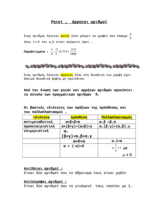 ρητοί άρρητοι 1. Ρητοί , άρρητοι αριθμοί