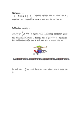 a − b = a + (−b) δηλαδή αφαιρώ τον b από τον α ,