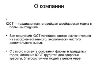 Компания Юст производит высококачественные экологически чистые продукты для здоровья и красоты, начиная с 1930-х годов. Крем можжевельник обладает противовоспалительными и обезболивающими свойствами, в то время как масло 31 универсальное травяное имеет широкий спектр применения, включая поддержание иммунной системы и улучшение состояния кожи и волос. Оба продукта рекомендуются для использования в различных терапевтических целях и способах применения.