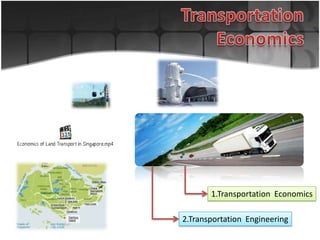 โครงสร้างทางเศรษฐศาสตร์ของการขนส่ง1.อุปสงค์ในการขนส่ง (Demand ofTransportation)การขนส่งเป็นกิจกรรมทางเศรษฐศาสตร์แขนงหนึ่งที่มีองค์ประกอบต่างๆ หลายประการ ซึ่งถือว่าเป็นโครงสร้างหรือลักษณะของการจนส่งแต่ละประเภท ในการพิจารณาถึงโครงสร้างทางเศรษฐกิจของการขนส่ง จะต้องคำนึงถึงองค์ประกอบ 4 ประการP (ราคา)D (เส้นอุปสงค์)0Q (ปริมาณ)อุปสงค์ = ความต้องการ + ความสามารถในการจ่าย + ยินดีจ่ายถ้าหากราคาสินค้าและบริการอยู่ในระดับสูง ปริมาณความต้องการในสินค้าและบริการนั้นๆ จะอยู่ในระดับต่ำ แต่ถ้าราคาของสินค้าและบริการอยู่ในระดับต่ำ ปริมาณความต้องการของสินค้าก็สูงขึ้น - 11.