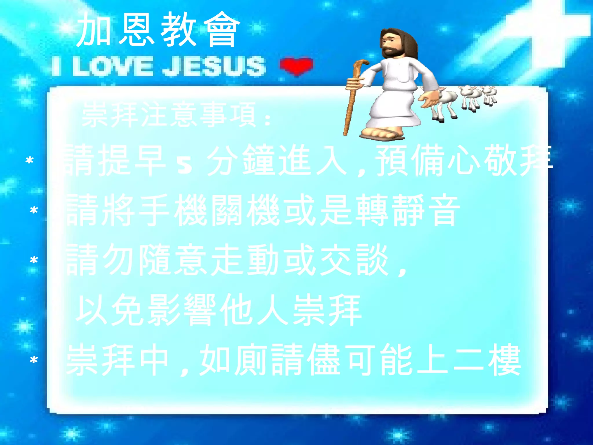 * 請提早 5 分鐘進入 , 預備心敬拜 * 請將手機關機或是轉靜音 * 請勿隨意走動或交談 , 以免影響他人崇拜 * 崇拜中 , 如廁請儘可能上二樓