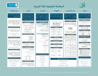 يتناول النص معالجة اللغة العربية الطبيعية، حيث يشرح محتوياته المتعلقة بالخط العربي، الأصوات، التهجي، والصرف والنحو. يستعرض أهمية الفونيمات وتباين اللهجات، وكذلك دراسة بنية الجملة والأدوار الدلالية في اللغة. كما يتطرق إلى تقنيات استخراج المعلومات من النصوص وتطبيقات تحليل النحو.