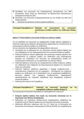 Κατηγορία Παρεμβάσεων 1: Πρόληψη και αντιμετώπιση του κοινωνικού