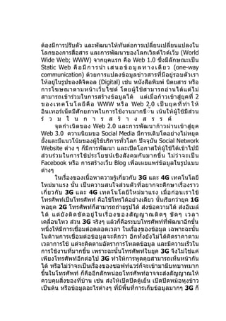 ข อ ง เ ท ค โ น โ ล ยี คื อ WWW ห รื อ Web 2.0 เ ป็ น ยุ ค ที่ ทำา ใ ห้