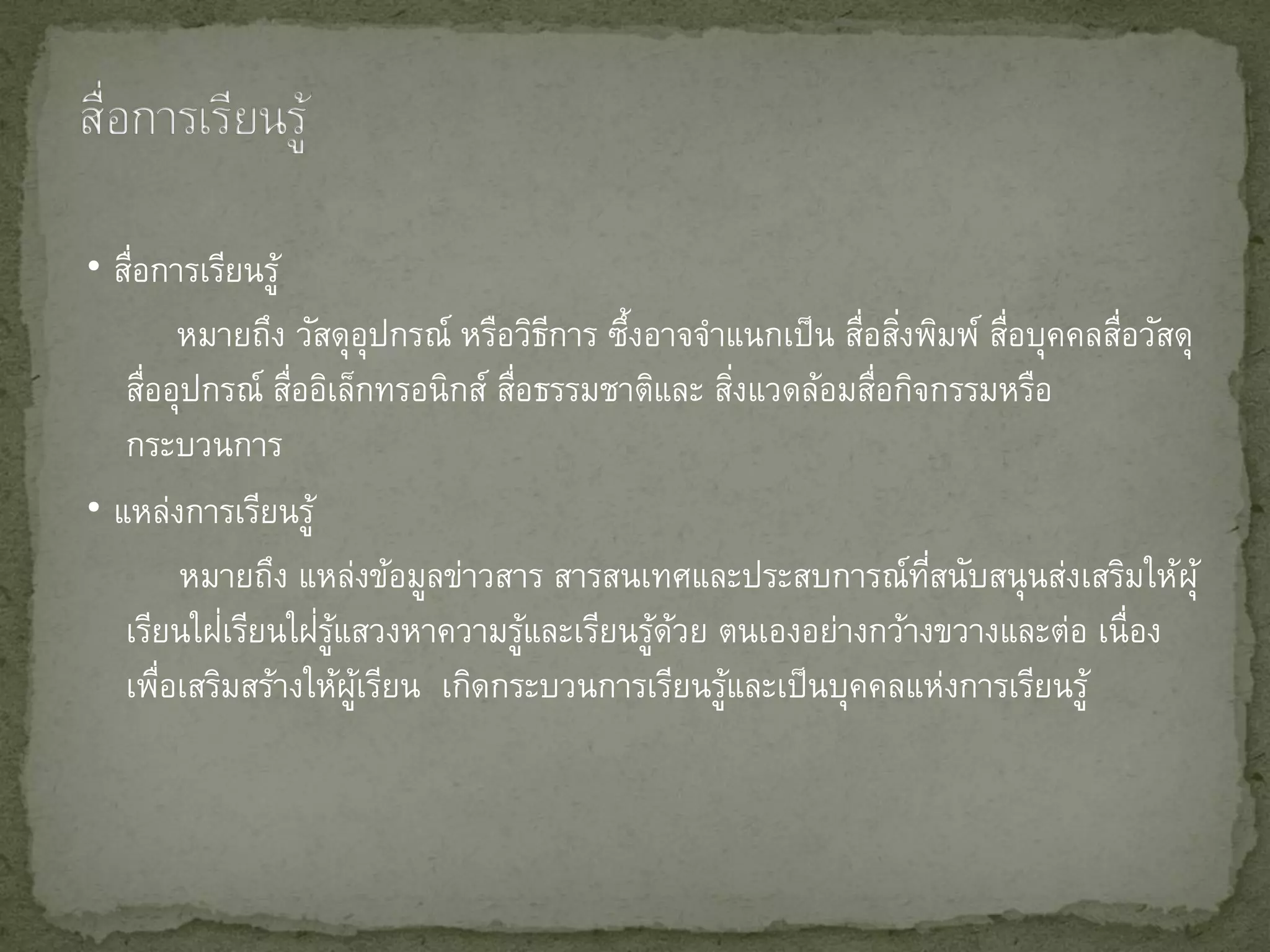 คือสิงทีใช้เป็ นสือกลางให้ผสอนสามารรถถ่ายทอด ความรูเจตคติและทักษะไปยัง