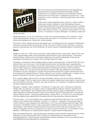 Эссе рассматривает ключевые аспекты успешного запуска стартапов, подчеркивая важность наличия талантливых и преданных своему делу сотрудников, улучшения существующих решений и понимания потребностей клиентов. Авторы утверждают, что идеи не являются основным фактором успеха компаний — важнее правильные люди и их способность реализовать идеи. Также отмечается, что предприниматели не обязательно должны иметь бизнес-образование, так как навыки программирования и понимание потребностей пользователей могут быть более значительными для успеха.