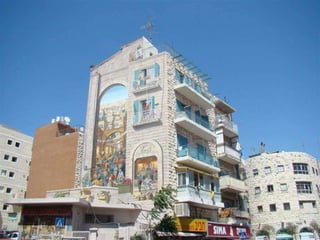 " בית רוטשילד" - כיכר בתי מחסה ב -1858 מסייעת משפחת רוטשילד לבנות שכונה מודרנית כדי לפתור את מצוקת הדיור הקשה בעיר העתיקה . סמל המשפחה מוטבע בבניין המשמש כיום כבית ספר דתי .