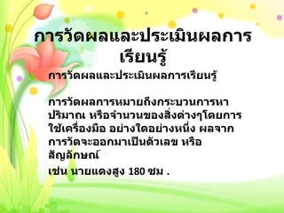 การวัดและประเมินผลการเรียนรู้ PPT