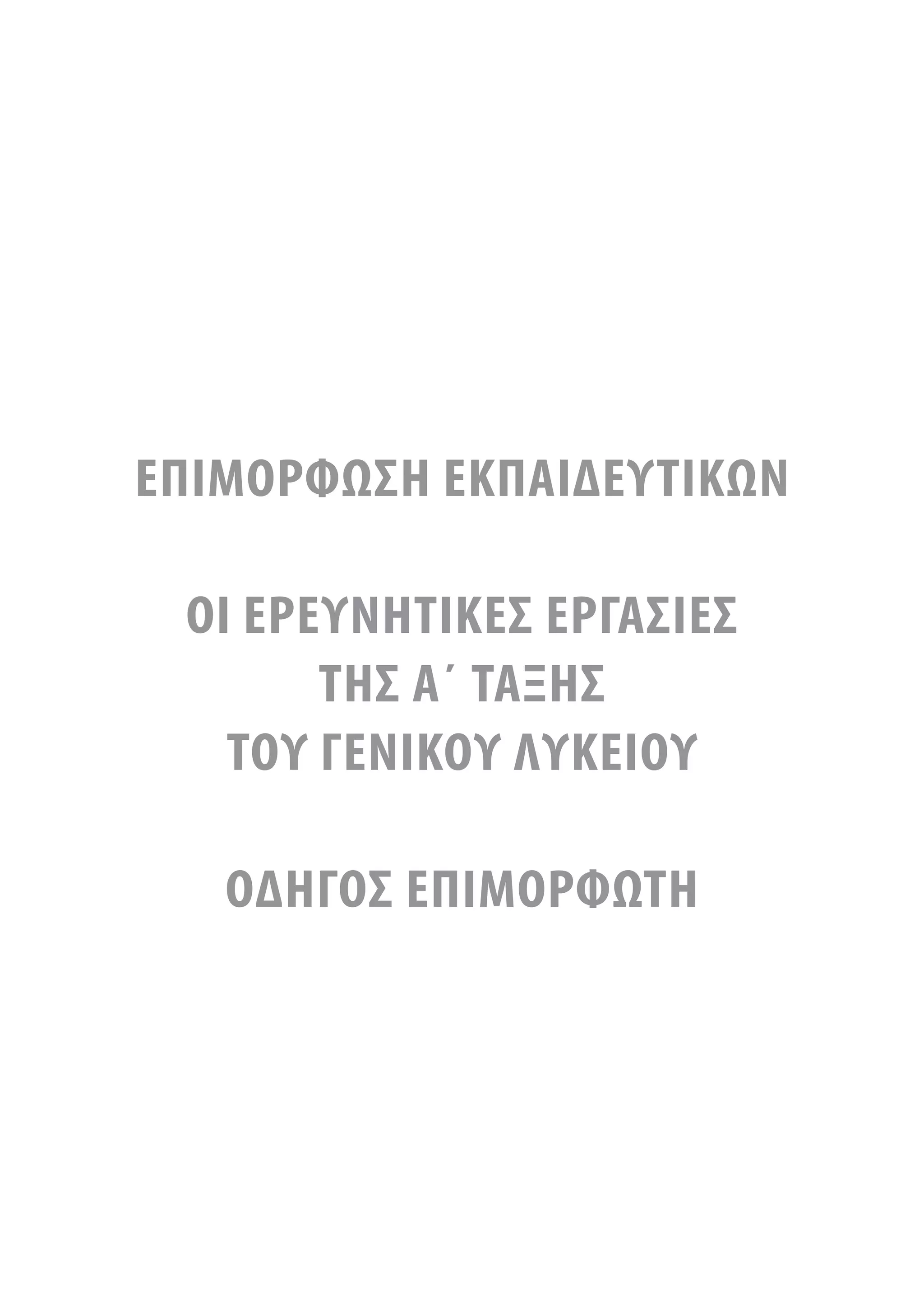 τους εκπαιδευτικούς, ώστε να ανταποκριθούν στις οργανωτικές, συντονιστικές και παιδαγωγικές πτυχές αναγκών των εκπαιδευτικών που θα αναλάβουν τις Ερευνητικές Εργασίες της Α΄ Τάξης του Γενικού