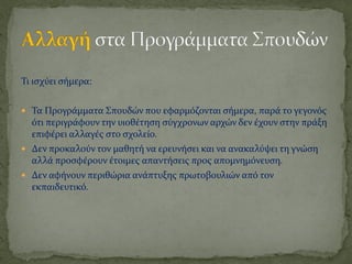 Τα Προγρϊμματα Σπουδών που εφαρμόζονται ςόμερα, παρϊ το γεγονόσ