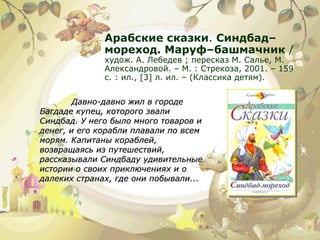 Документ содержит перечень различных сборников народных сказок из разных культур, включая арабские, японские, английские и русские. Каждая книга предлагает уникальные истории, которые учат детей важным моральным ценностям, таким как доброта, дружба и смелость. Эта коллекция направлена на развитие внутреннего мира ребенка и его понимания жизненных ситуаций через увлекательные и иллюстрированные сказки.