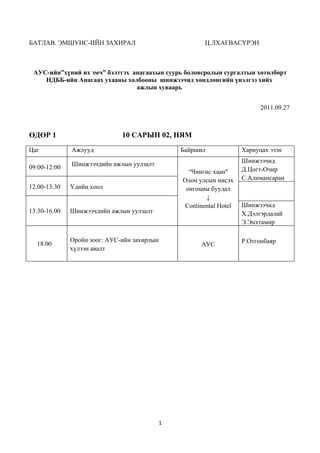 2011 оны менежерийн үр дүнгийн гэрээний тайлангын хурлын хөтөлбөр DOCX