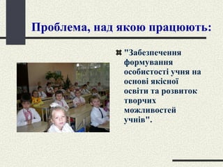 Проблема, над якоюпрацюють: "Забезпечення формування особистості учня на основі якісної освіти та розвиток творчих можливостей учнів".