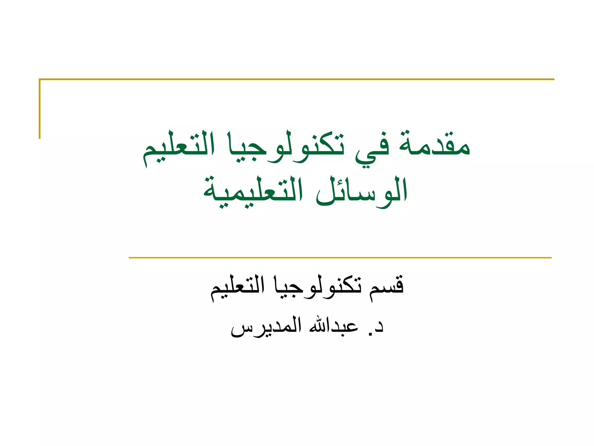يتناول الوثيقة أهمية الوسائل التعليمية في تعزيز عملية التعليم والتعلم، موضحًا تصنيفات وأنواع هذه الوسائل المختلفة. كما يبرز أهمية اختيار الوسيلة التعليمية المناسبة بما يتناسب مع الأهداف التعليمية والفئة المستهدفة. ويشير أيضًا إلى ضرورة استخدام الوسائل التعليمية بشكل فعال قبل وأثناء وبعد العملية التعليمية.
