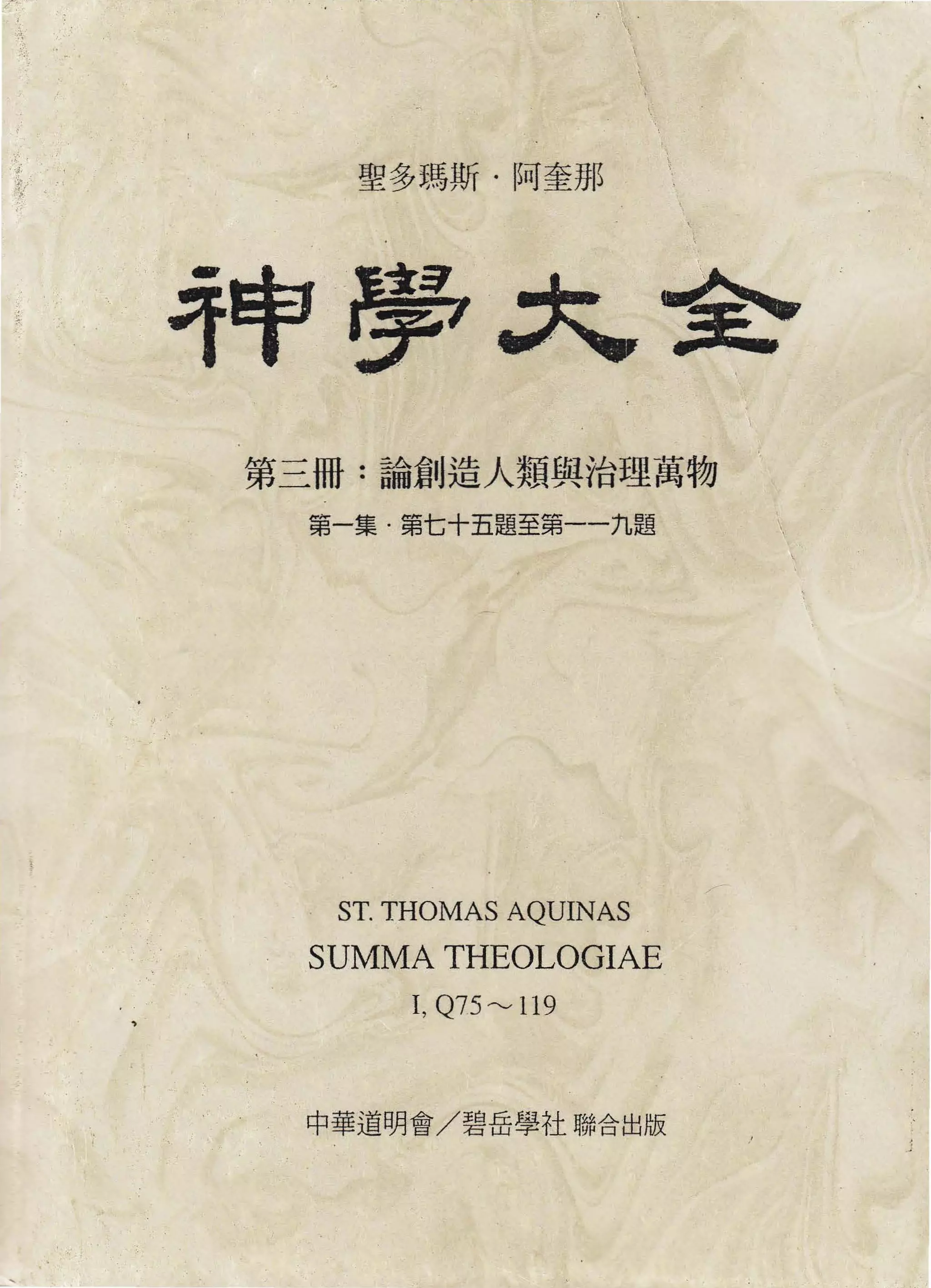 本書為聖多瑪斯·阿奎那的《神學大全》第三冊,探討創造人類與治理萬物的主題,包括靈魂的本質、功能及與身體的關係等問題。全書透過問答式結構,深入分析靈魂的機能與人的本質,並引入古代哲學和神學家之觀點進行辯論。該中文版透過多種語言版本的參考,旨在適合國人的閱讀習慣。