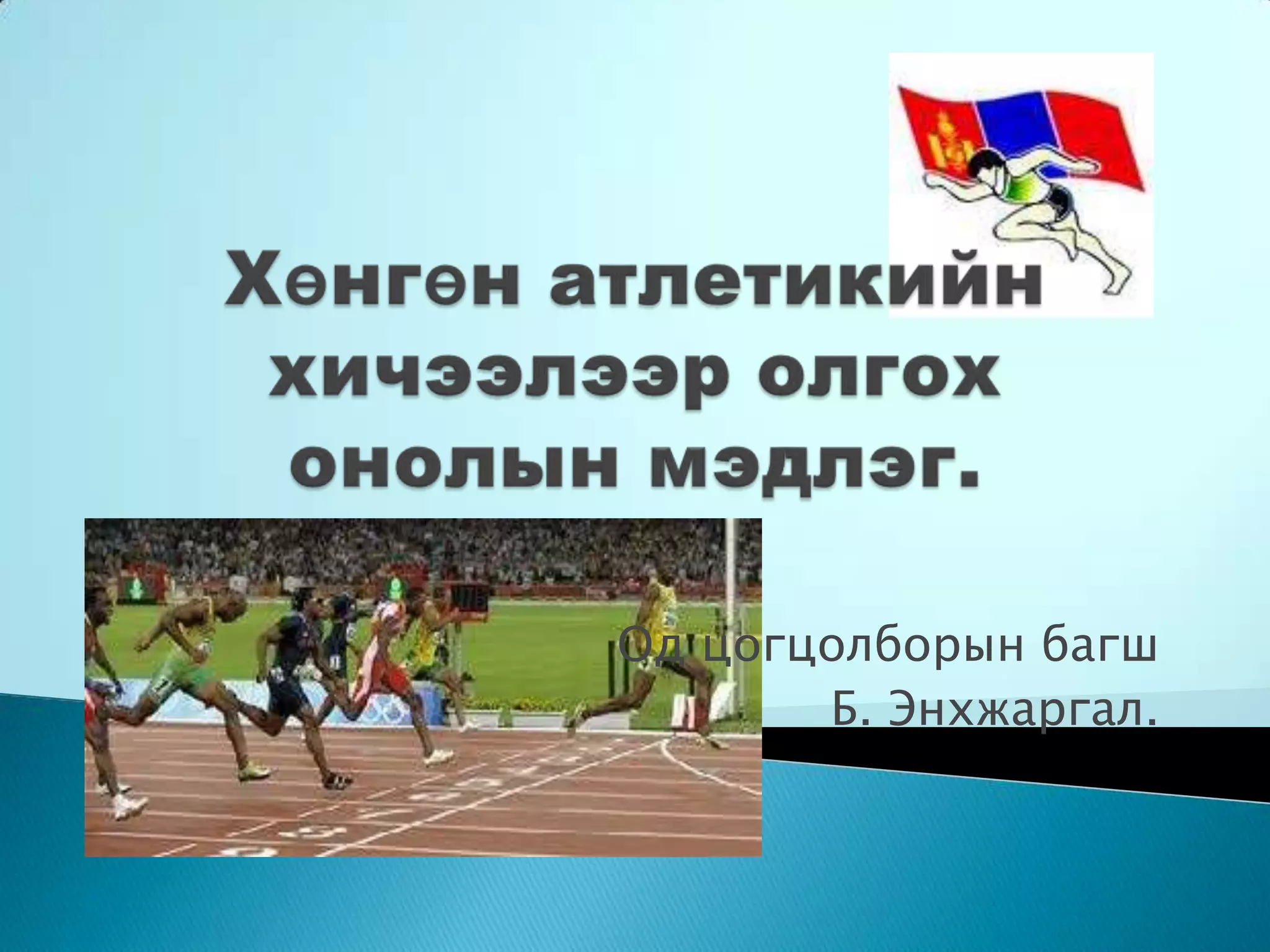 Оршил МЭӨ776 онд эртний Грекэд явагдсан Олимпийн анхны тоглолтод 192м 27 см буюу 100 ярдын гүйлт орсноор хөнгөн атлетик нь түүхийн хуудаснаа тэмдэглэгдэн үлджээ. Хөнгөн өтлетик нь алхалт, гүйлт, харайлт, шидэлтийн төрлийг агуулсан дэлхий нийтэд спортын хаан гэгддэг өвөрмөц шинж чанартай агуу спортын төрөл билээ. Олон улсын хөнгөн атлетикийн холбоо нь 1912 онд байгуулагджээ. /IAAF/2011 оны байдлаар дэлхийн 243 орныг нэгтгэсэн спортын томоохон холбоо болж өргөжжээ. - 3.
