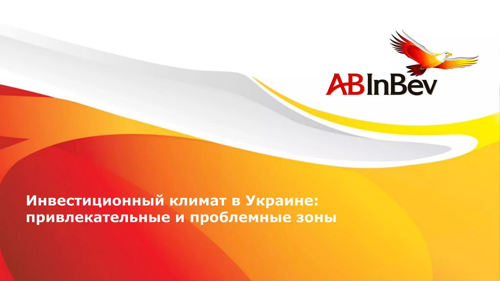 Документ описывает инвестиционный климат в Украине с акцентом на компанию Anheuser-Busch InBev, которая занимает значительное место на рынке пива и инвестировала более 850 миллионов долларов США. Также рассматриваются проблемы налогового законодательства и разрешительной системы, включая недостатки в регулировании и взаимодействии с налоговыми органами. В завершение упоминаются программы корпоративной социальной ответственности компании, направленные на ответственное потребление и защиту окружающей среды.