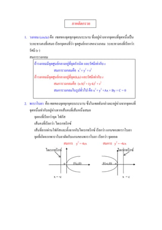 1. วงกลม (circle)คือ เซตของจุดทุกจุดบนระนาบ ซึ่งอยู่ห่างจากจุดคงที่จุดหนึ่งเป็น
