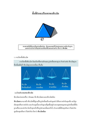 พื้นที่ผิวและปริมาตรของพีระมิด 1. การเรียกชื่อพีระมิด
