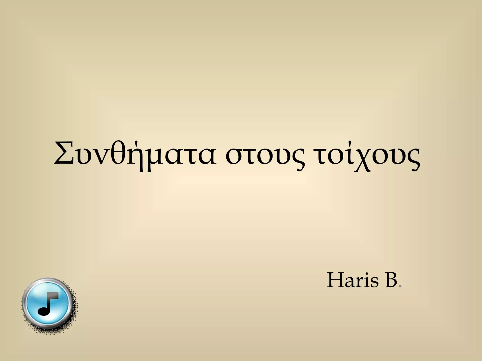 συνθήματα στους τοίχους 1. 2. Τα συνθήματα στους τοίχους των πόλεων πάντα ασκούν μια ιδιαίτερη γοητεία. Καθένα απ' αυτά αποτελεί μια ξεχωριστή κατηγορία τέχνης και την μοναδική έκφραση μιας φωνής. Παρακάτω ακολουθούν ορισμένα από τα ωραιότερα: 3. 4. "Αν τα λάθη διδάσκουν, τότε έχω καταπληκτική μόρφωση" (οδός Μπενάκη, Αθήνα) 5. 6. "Θέλω να γίνω αυτό που ήμουν τότε που ήθελα να γίνω αυτό που είμαι τώρα" (πλατεία Εξαρχείων, Αθήνα) 7. 8. 9. 10. 11. 12. 13. 14. 15. 16. 17. 18.