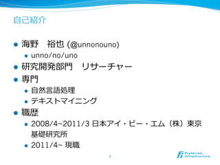 形態素解析の過去・現在・未来 1. 2. ⾃自⼰己紹介