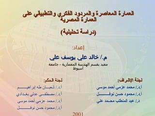 يتناول البحث تأثير العمارة المعاصرة على العمارة المصرية من خلال دراسة تفاعل الاتجاهات المعمارية في كل من مصر والعالم الغربي، ويطرح إشكاليات حول مدى توافق نتاج العمارة مع واقع المجتمع. يسعى البحث للإجابة عن أسئلة تتعلق بموضوعية تأثير العمارة المعاصرة على العمارة المصرية، ويدرس منهجيات وتقنيات تحليل العمارة في الفترات الزمنية المختلفة. من خلال البحث، تم استنتاج مفاهيم وتوصيات للارتقاء بالعمارة المصرية في القرن الحادي والعشرين.