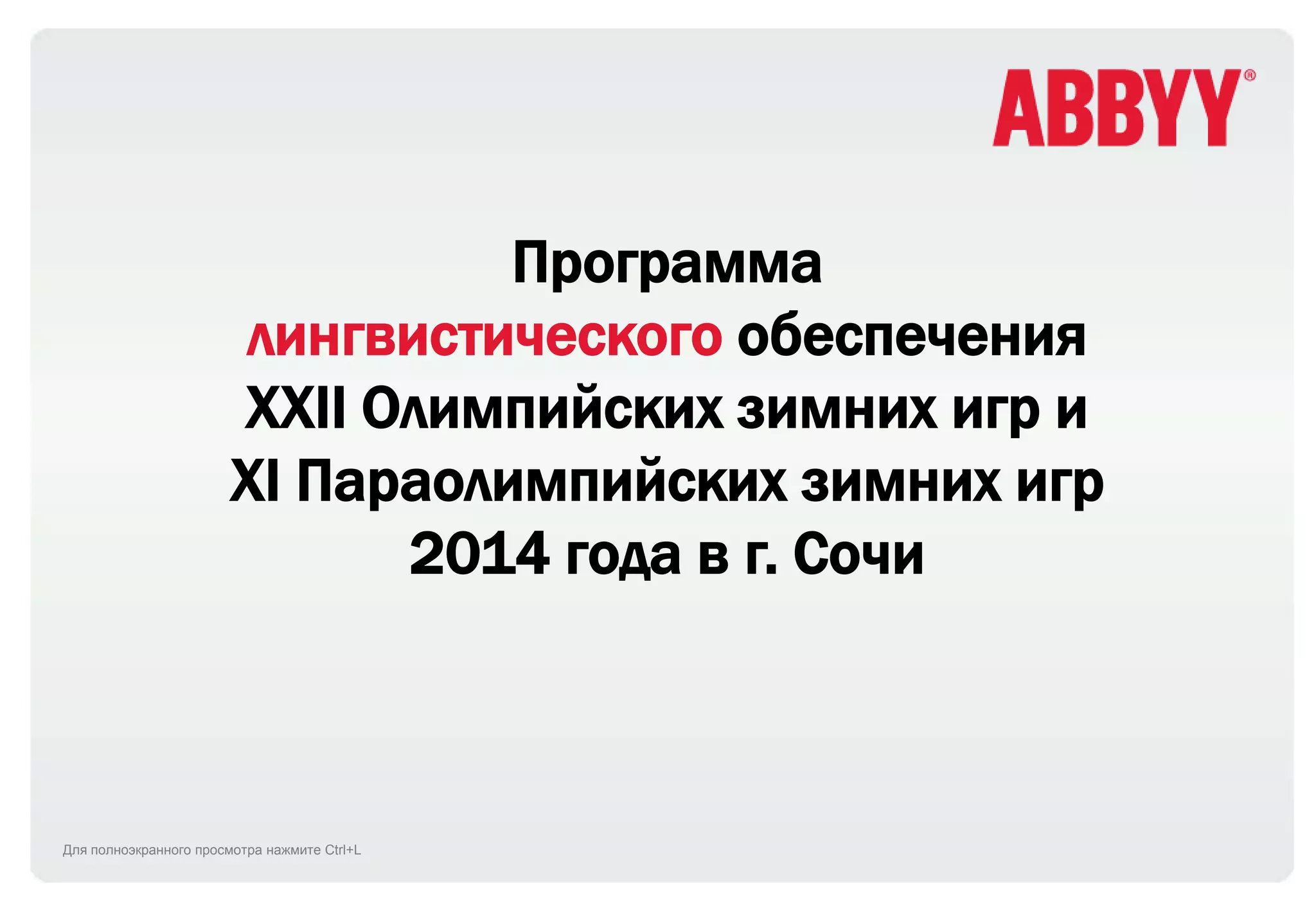 Документ описывает программу лингвистического обеспечения XXII Олимпийских зимних игр и XI Паралимпийских зимних игр 2014 года в Сочи, нацеленную на комфортные коммуникации иностранных гостей. Программа включает многоязычную поддержку через информационные материалы, call-центр и услуги переводчика, что должно улучшить туристическую привлекательность региона. Реализация этой программы призвана создать положительное впечатление у посетителей и повысить инвестиционную привлекательность Сочи и России в целом.