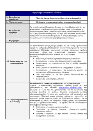 περιγραφή εκπαιδευτικού σεναρίου(μόνο το σενάριο)