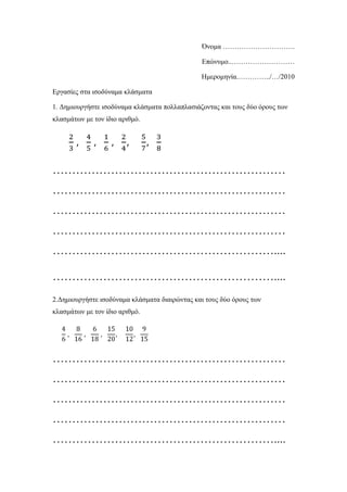 εργασίες στα ισοδύναμα κλάσματα απλοποίηση DOCX