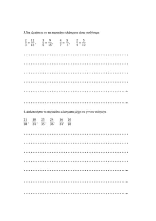 3.Να εξεηάζεηε ανηα παπακάηω κλάζμαηα είναι ιζοδύναμα