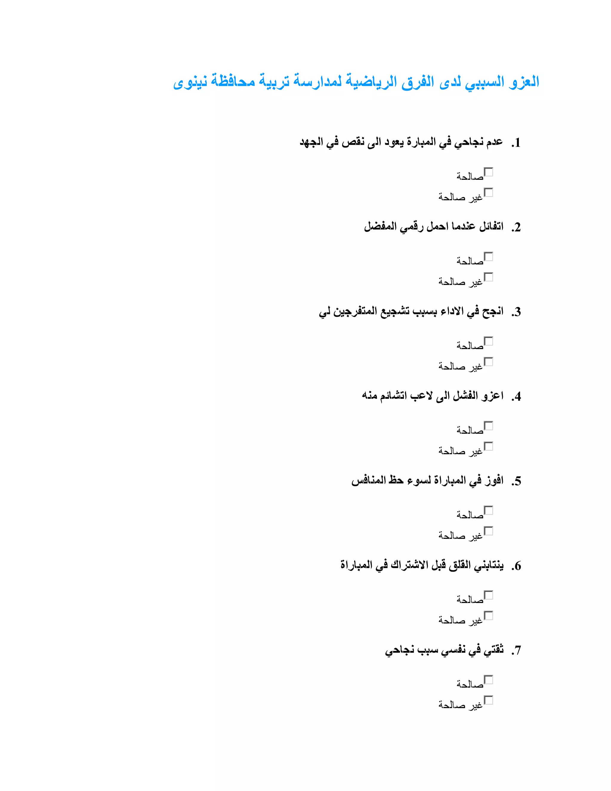 العزو السببي لدى الفرق الرياضية لمدارسة تربية محافظة نينوى