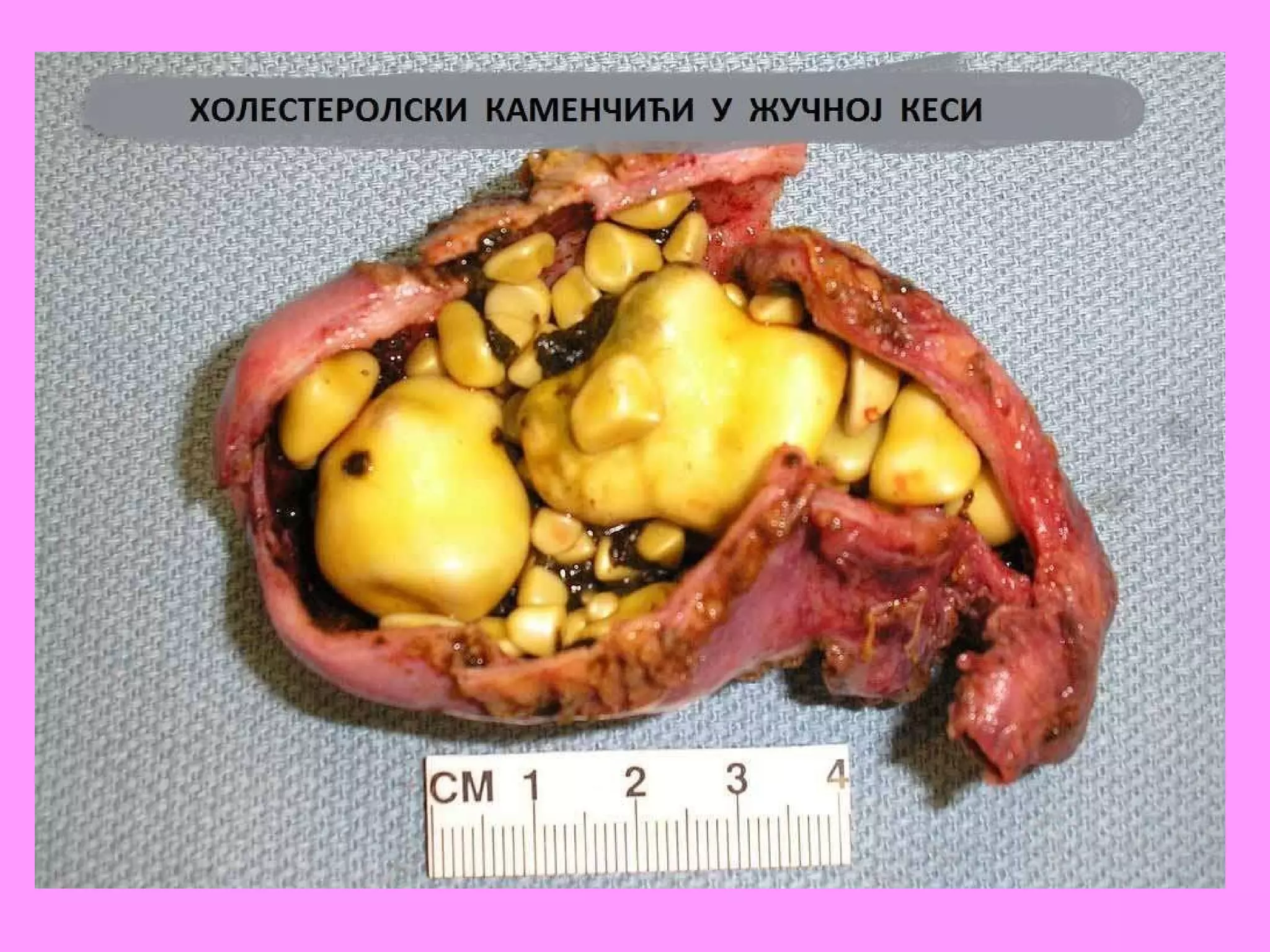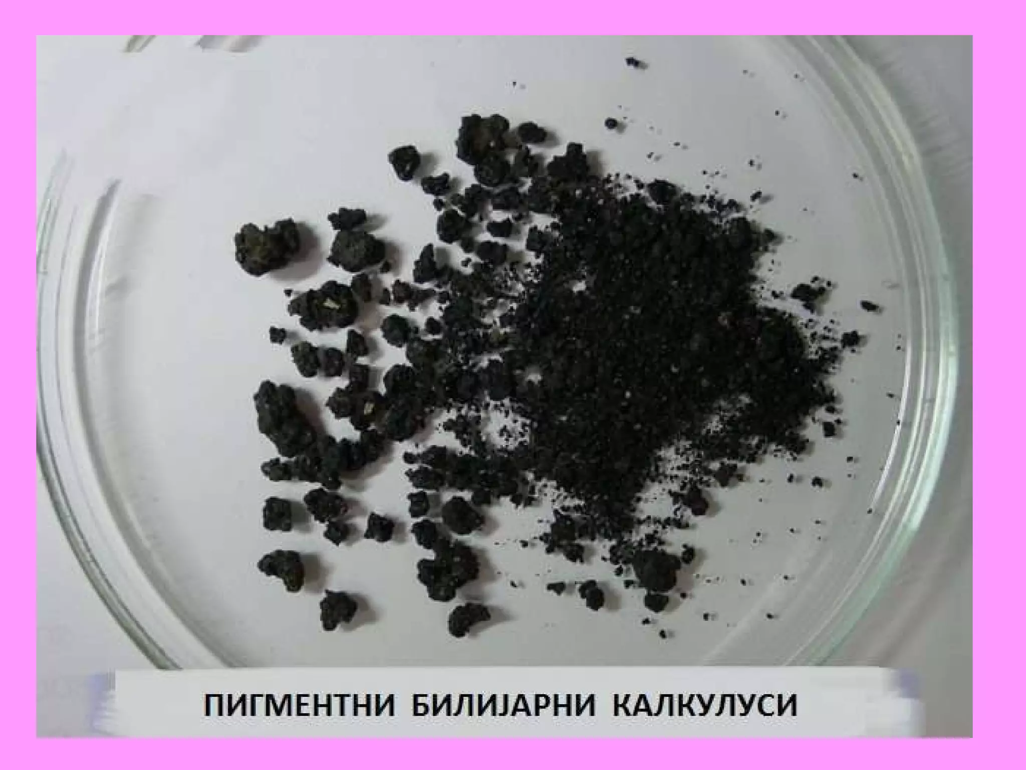 У организму постојетри основна типа каменаца : - Холестеролски , - Црни пигмантни и - Браон пигмантни - 11.