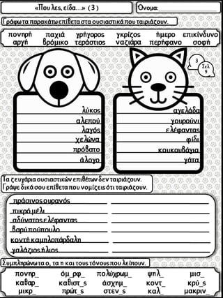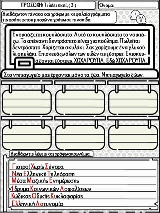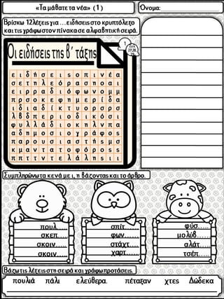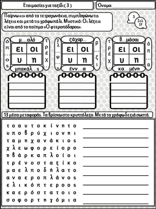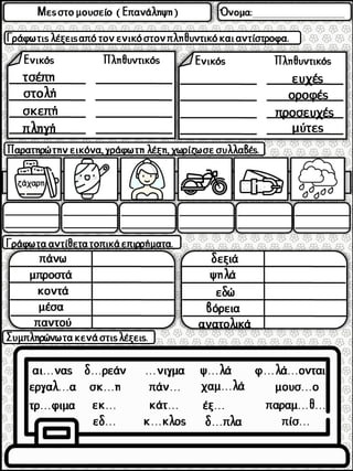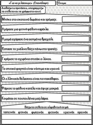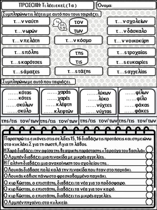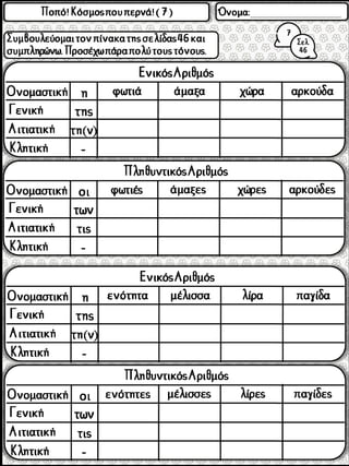 Φύλλα εργασίας για όλες τις ενότητες της γλώσσας της γ΄ δημοτικού